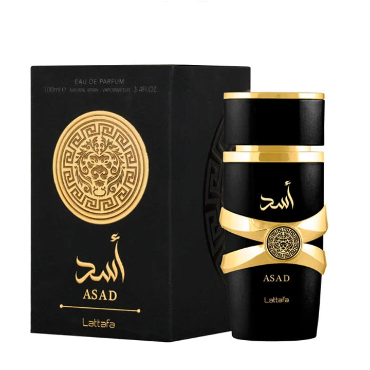 Asad de Lattafa Perfumes es una fragancia de la familia olfativa Ámbar para Hombres. Asad se lanzó en 2021.Es una fragancia de 100 ml. viene en empaque original en su estuche con HOlograma contramarcado.es un producto 100% original. FRAGANCIA MASCULINA